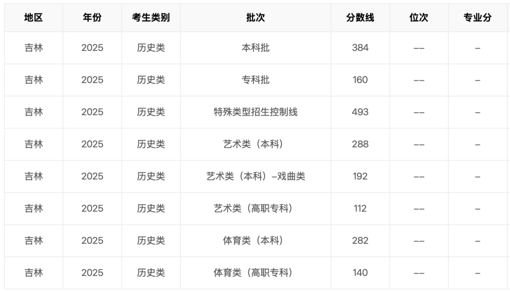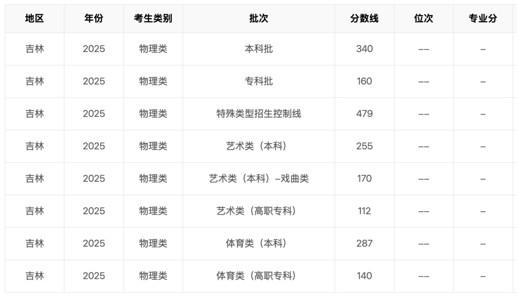 2025年吉林省高考分数线
