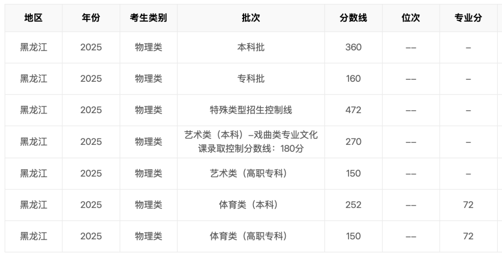 2025年黑龙江省高考分数线