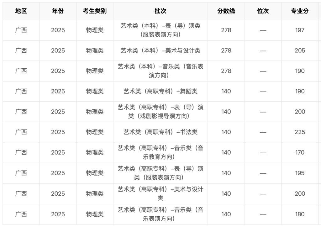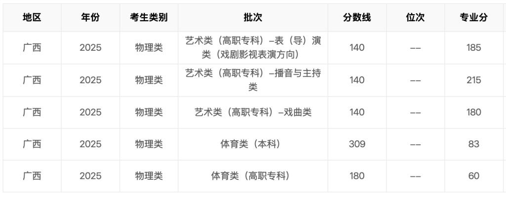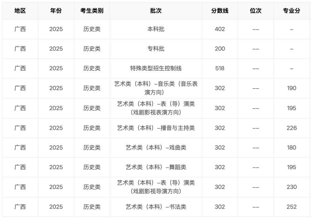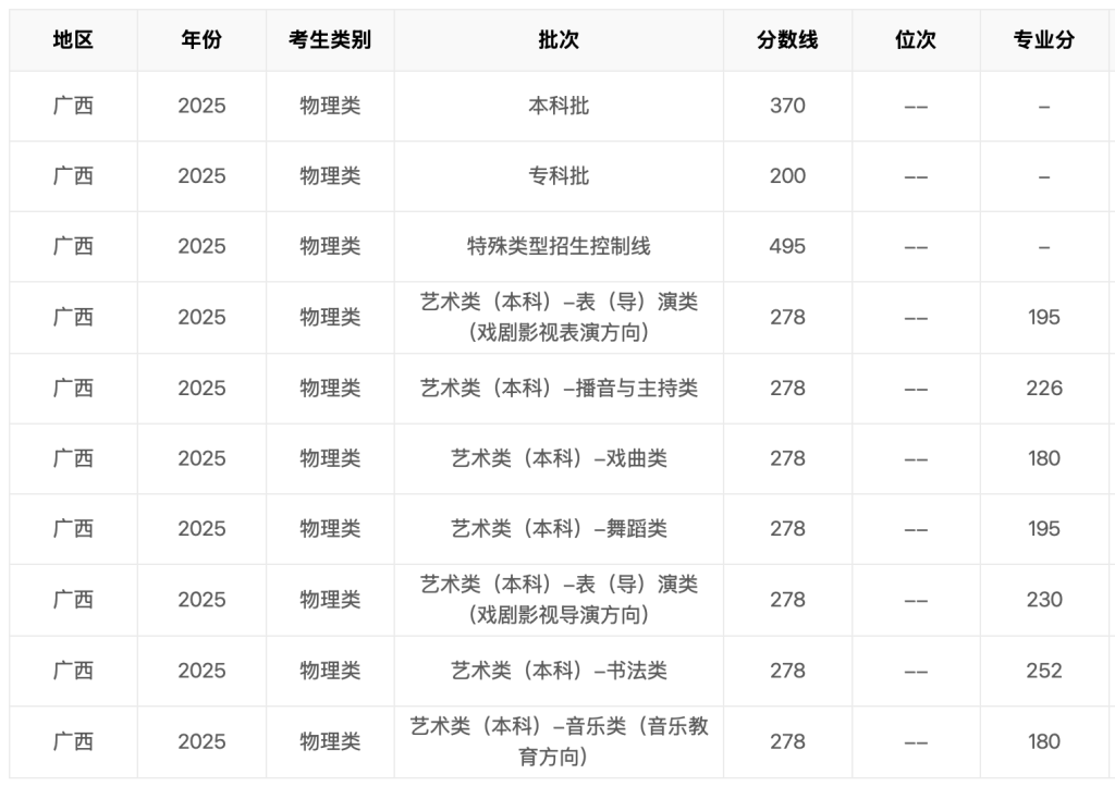 2025年广西省高考分数线