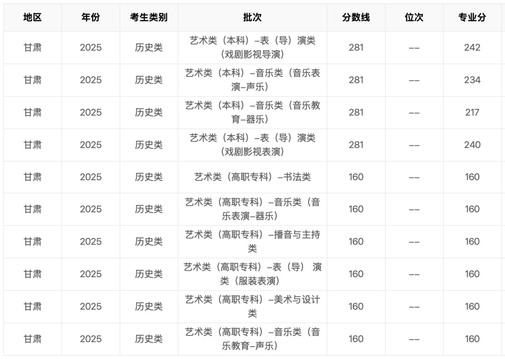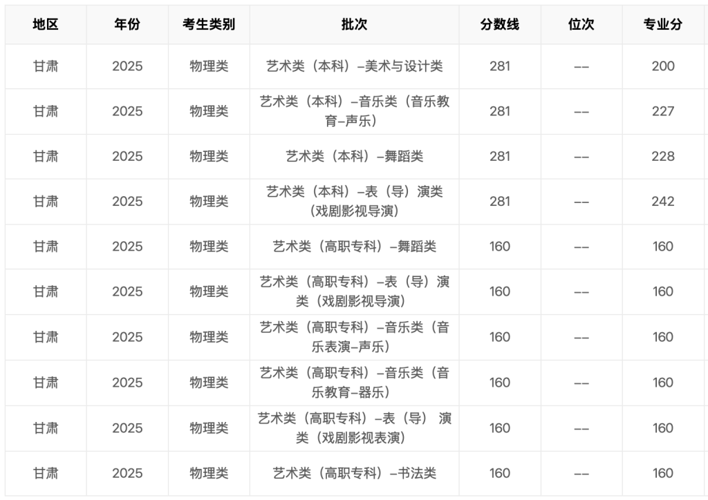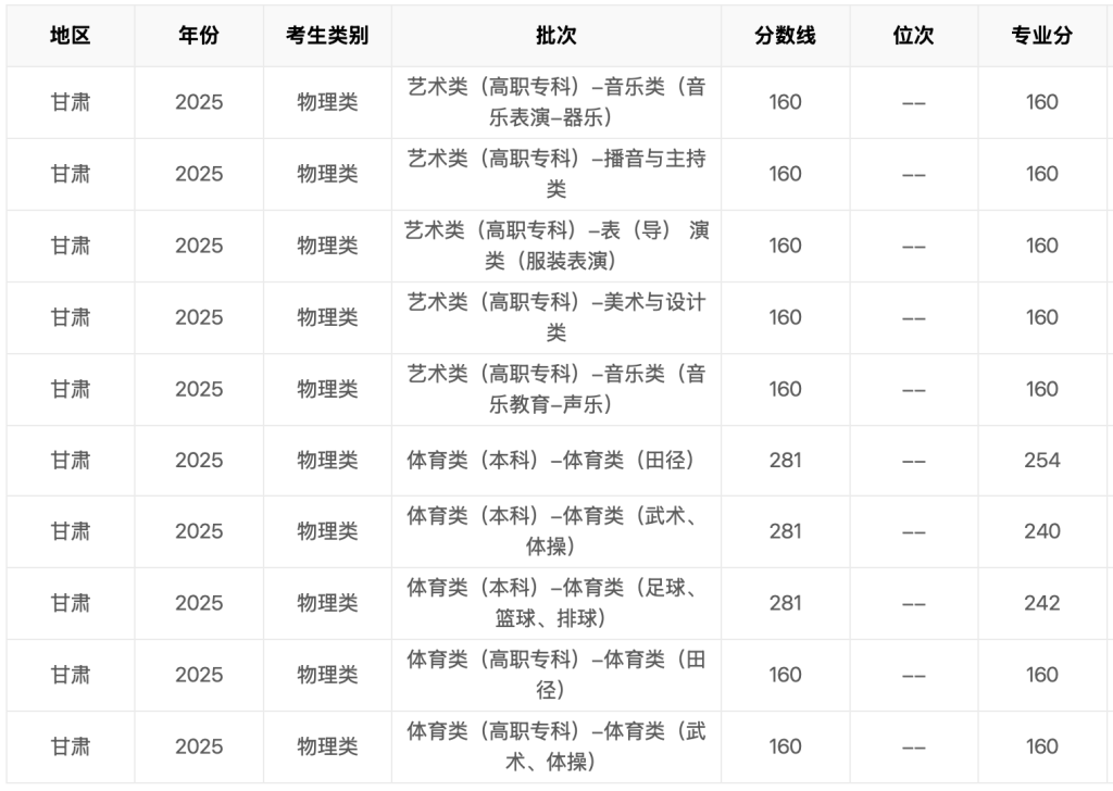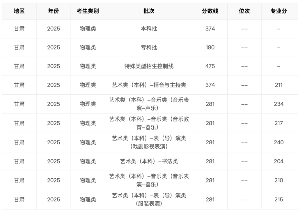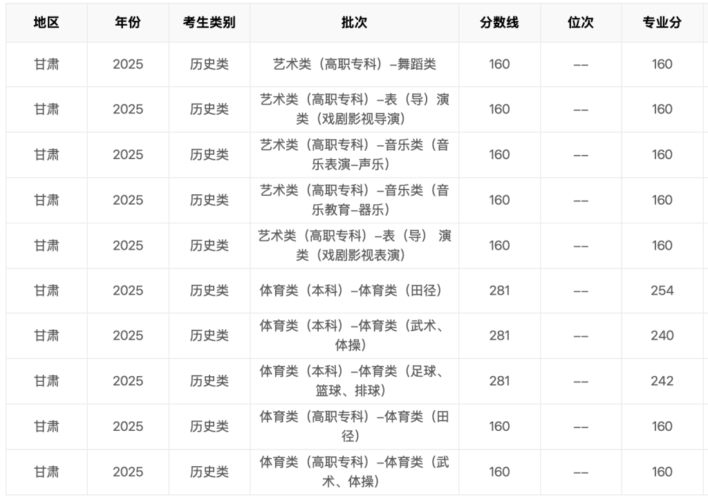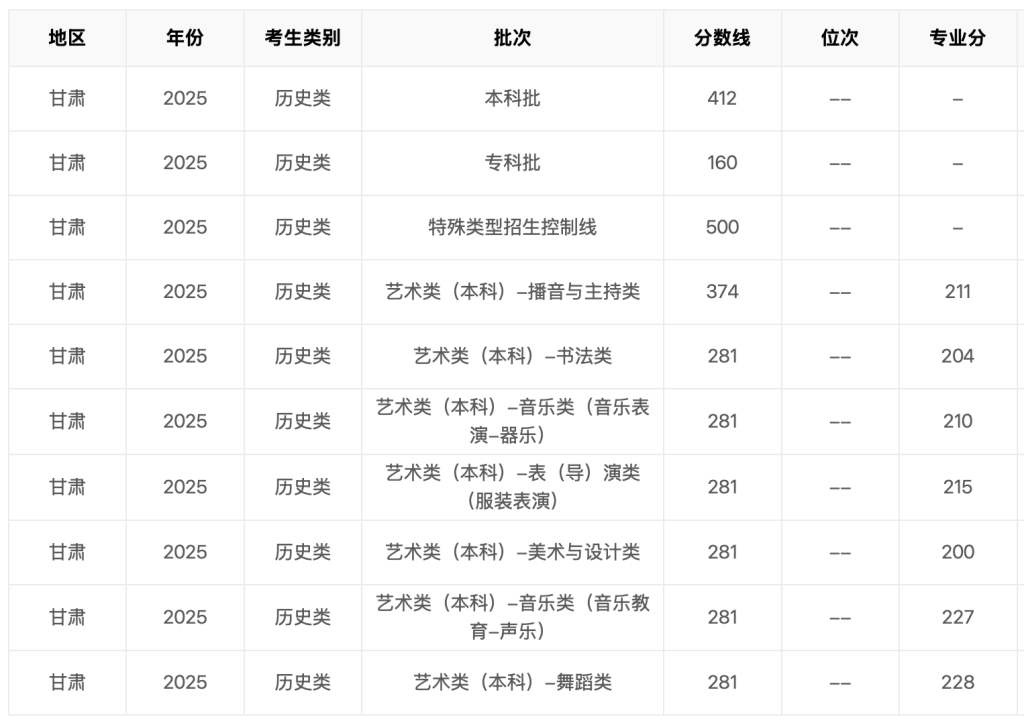 2025年甘肃省高考分数线